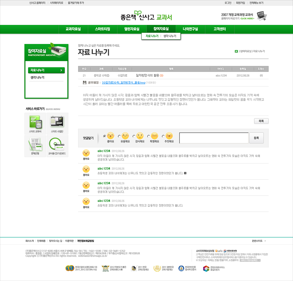 교과서 영업을 하기 위해 교사들에게 수업 관련 서비스를 제공하는 것이 목적인 교과서 웹사이트.