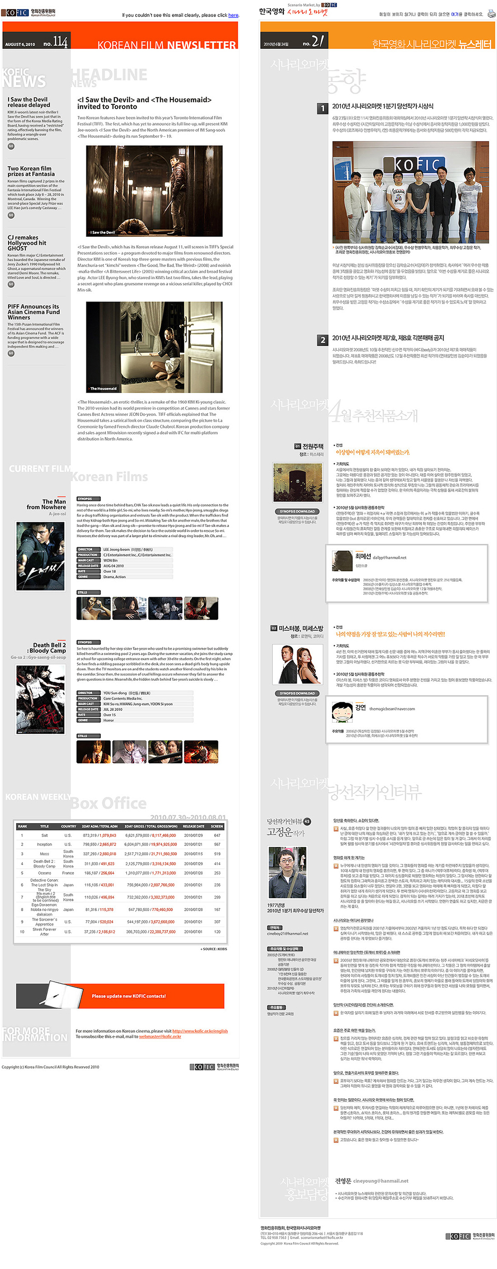 영화진흥위원회 국문 뉴스레터 계약이 2009년 12월로 종료되어 아쉬워하던 차. 영진위 해외홍보팀의 의뢰로 영문 뉴스레터 작업을 하게 되었고 이와 동시에 영진위 산하기관인 시나리오마켓 뉴스레터 작업도 함께 하게 되어 경제적으로 무척 행복했던 기간이었다. 그러나 세상만사가 언제나 그렇듯 7개월만에 계약 종료.(대행업체로 변경한다고 ㅋ)