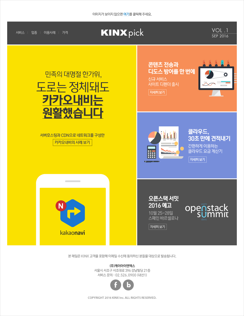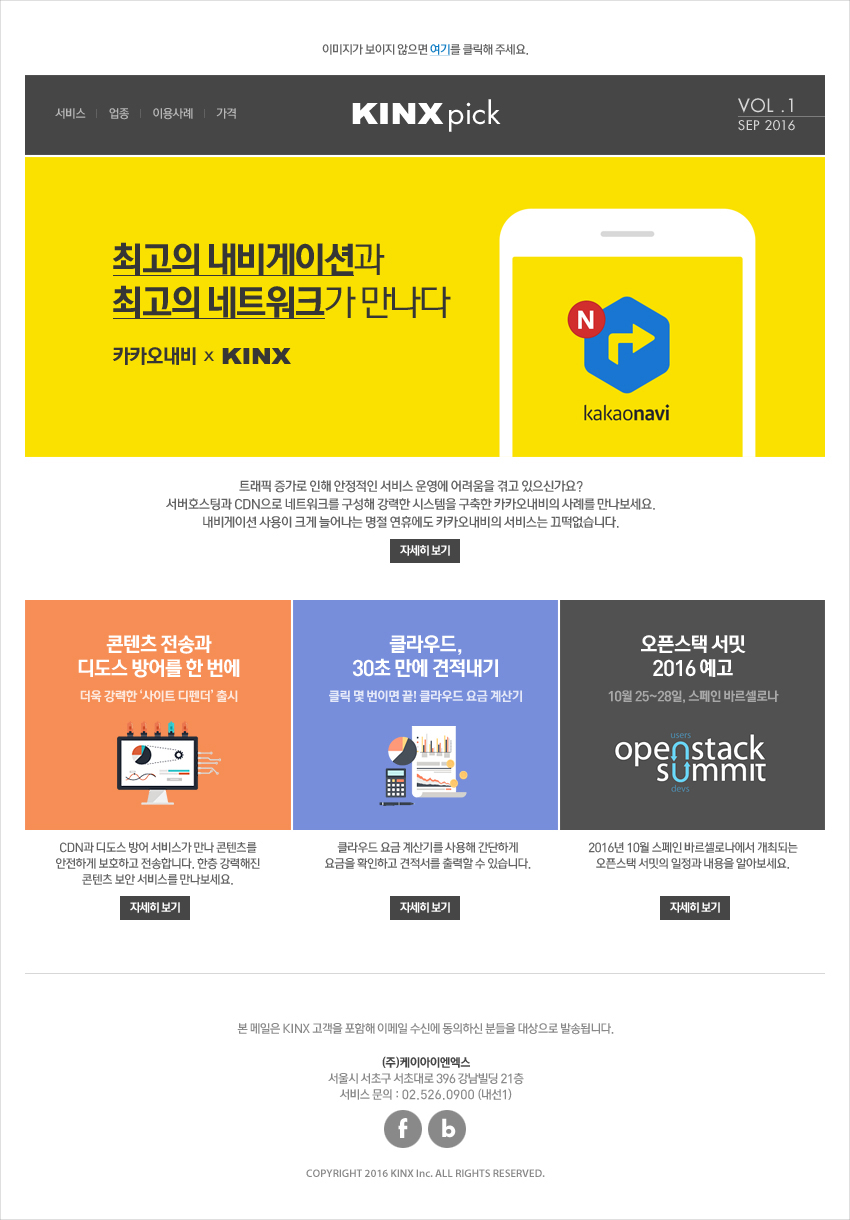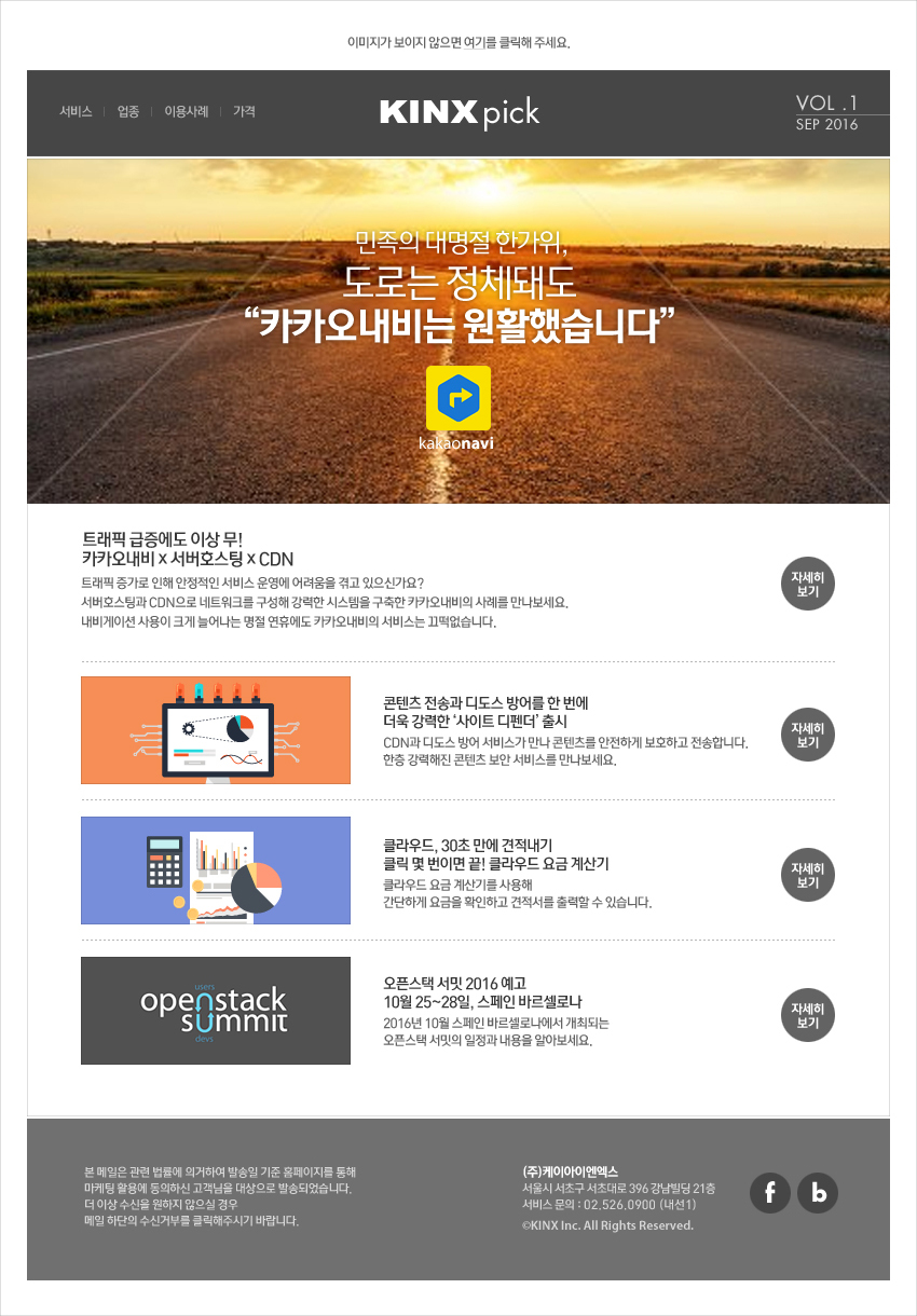 KINX에서 뉴스레터를 처음 시작하면서 제작한 시안들이다. 플랫한 디자인에, 빠른 제작 기간을 위해 기획서 내용을 변경/적용한 것이 첫번째 안이고 기획서 대로 만든 것이 두번째 안이다. 텍스트를 애매하게 넣어봐야 어차피 안 볼 사람은 바로 지울 것이고 볼 사람은 링크 타고 사이트에 가서 전체 내용을 볼 것이기 때문에, 뉴스레터에서는 메인 타이틀과 간단한 서브 타이틀 정도로 구성해도 충분하다는 생각인데..