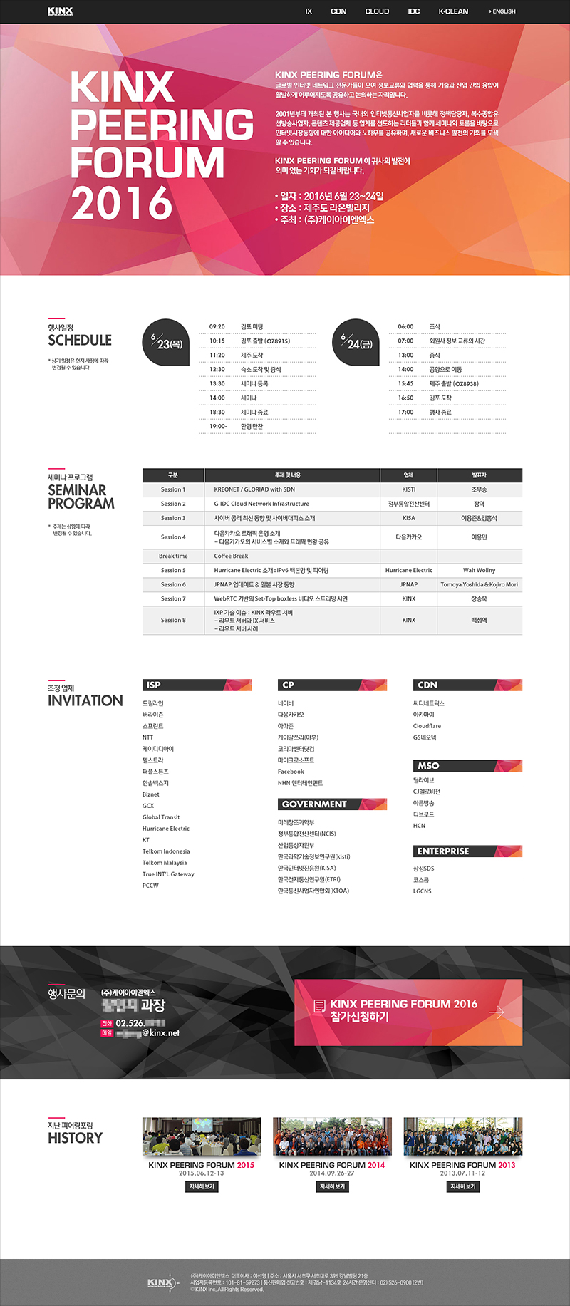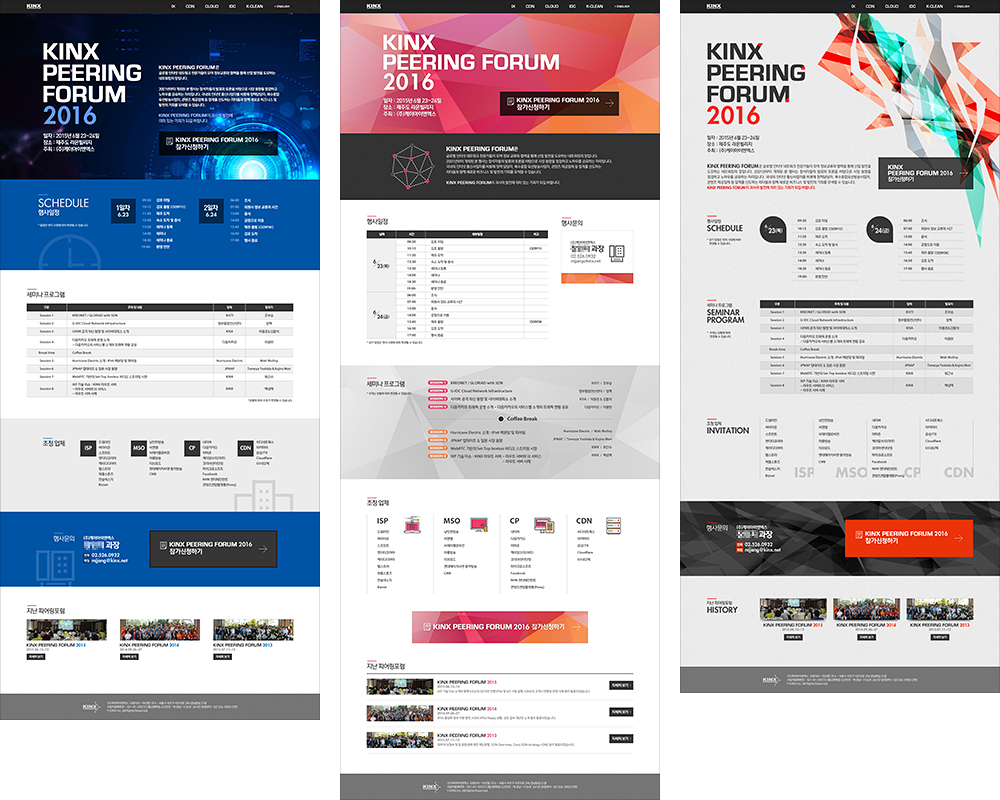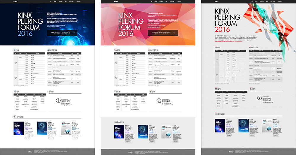 고객사 및 관계사를 대상으로 매년 실시하는 KINX의 대표 행사 '피어링포럼'의 안내/신청 사이트이다. 1페이지 형식이라 사이트라고 하기에 좀 그렇긴 하지만 지난 행사 안내 페이지도 있으니 사이트라고 봐도 좋을 듯 하다.
