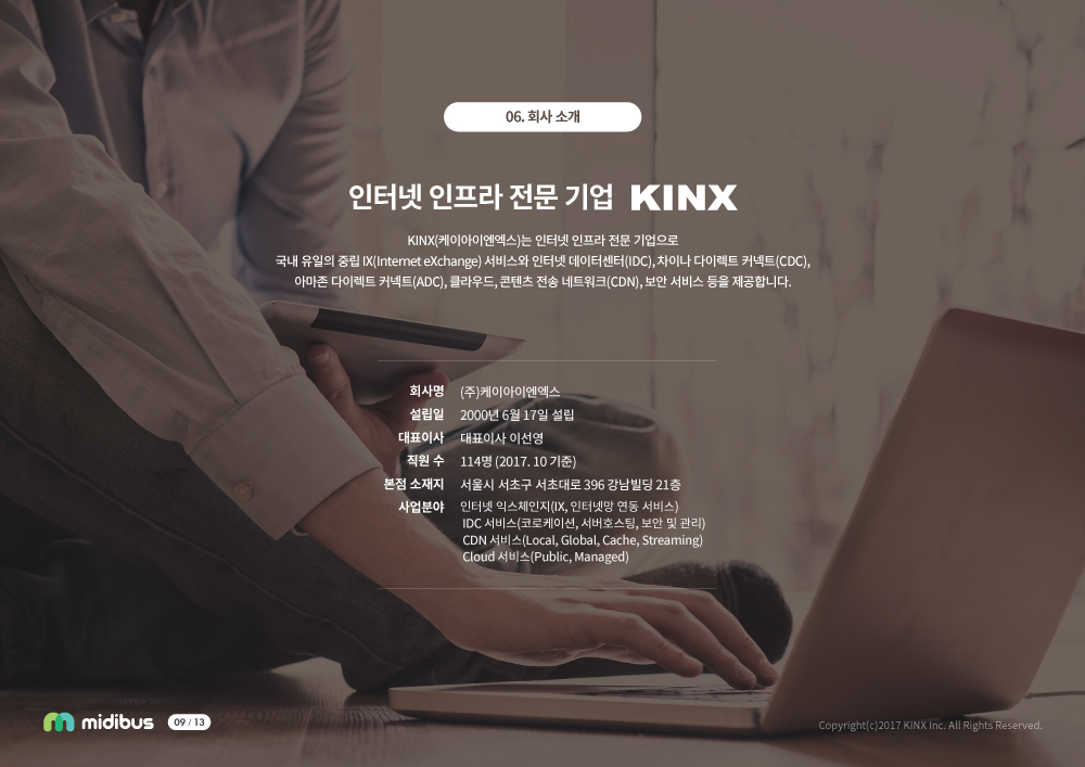 회사에서 서비스하고 있는 동영상 스트리밍 솔루션인 미디버스 서비스 소개 브로셔 초기 디자인. 현재는 몇 차례 업데이트 되었다.