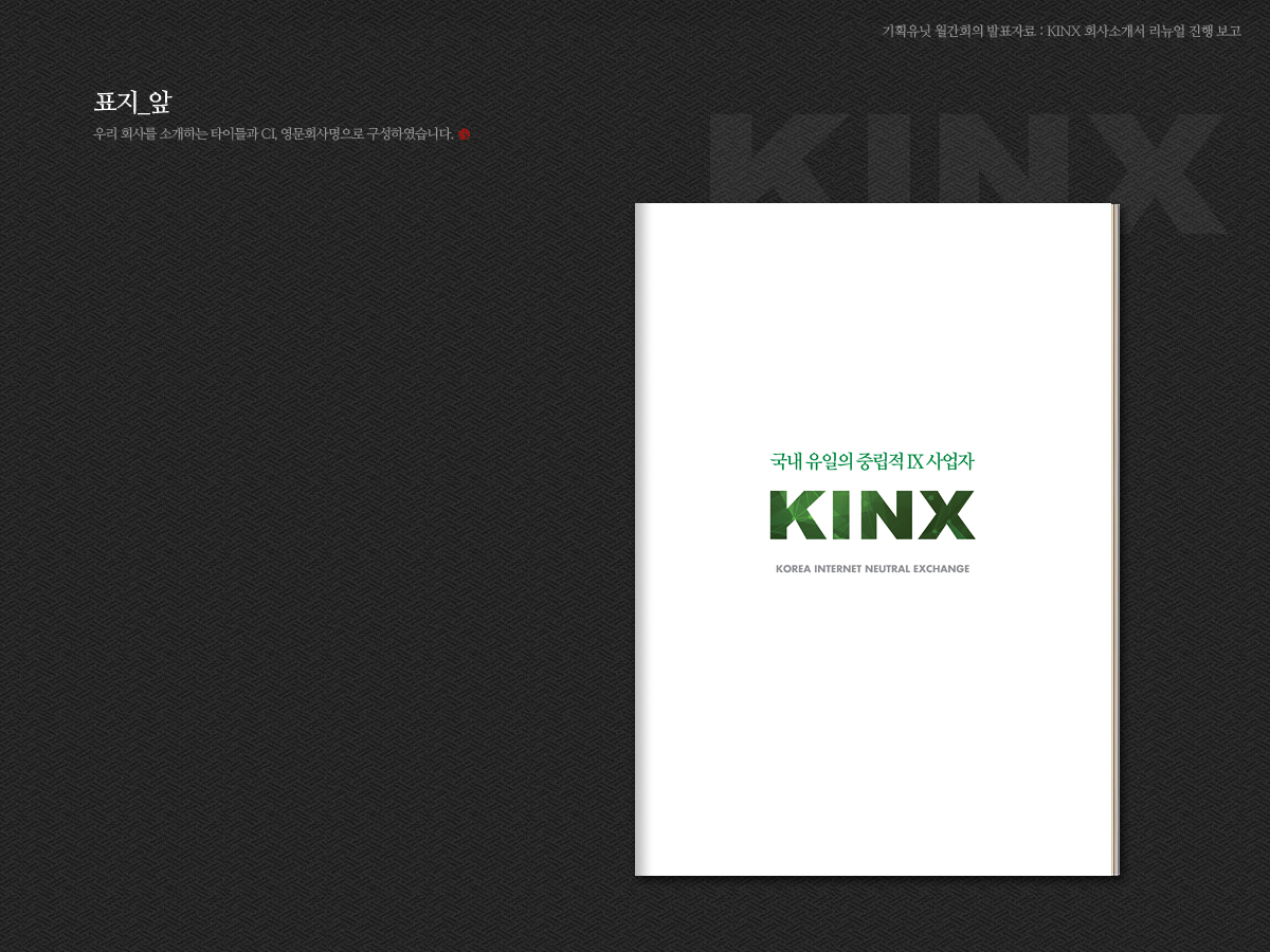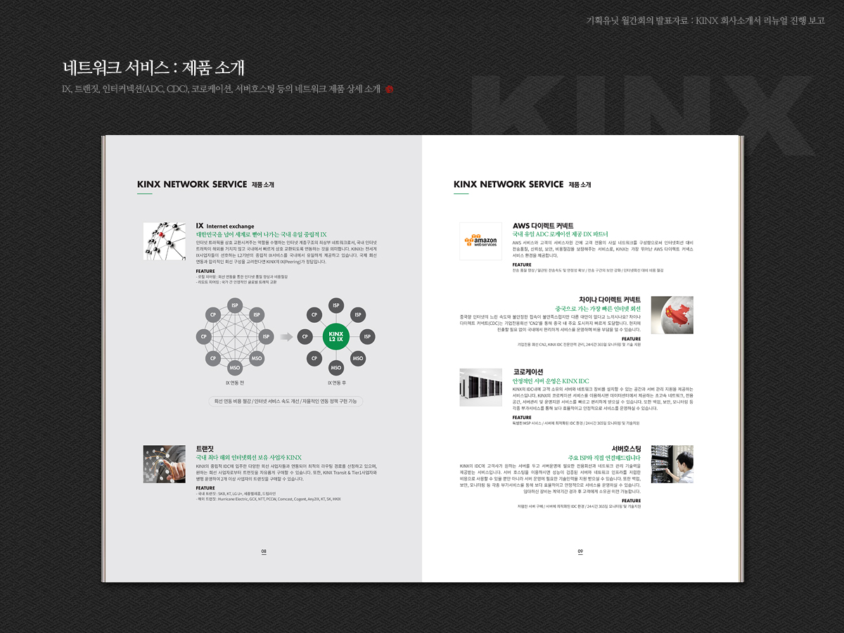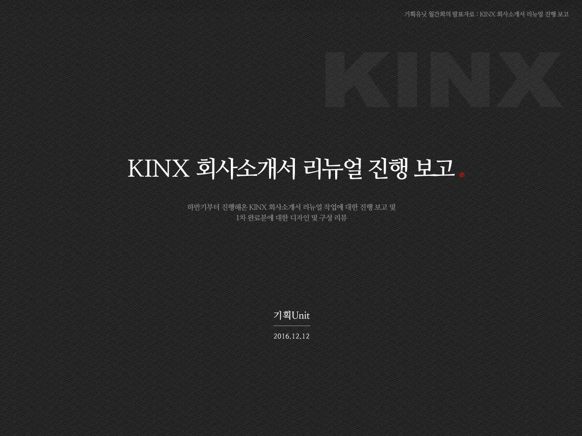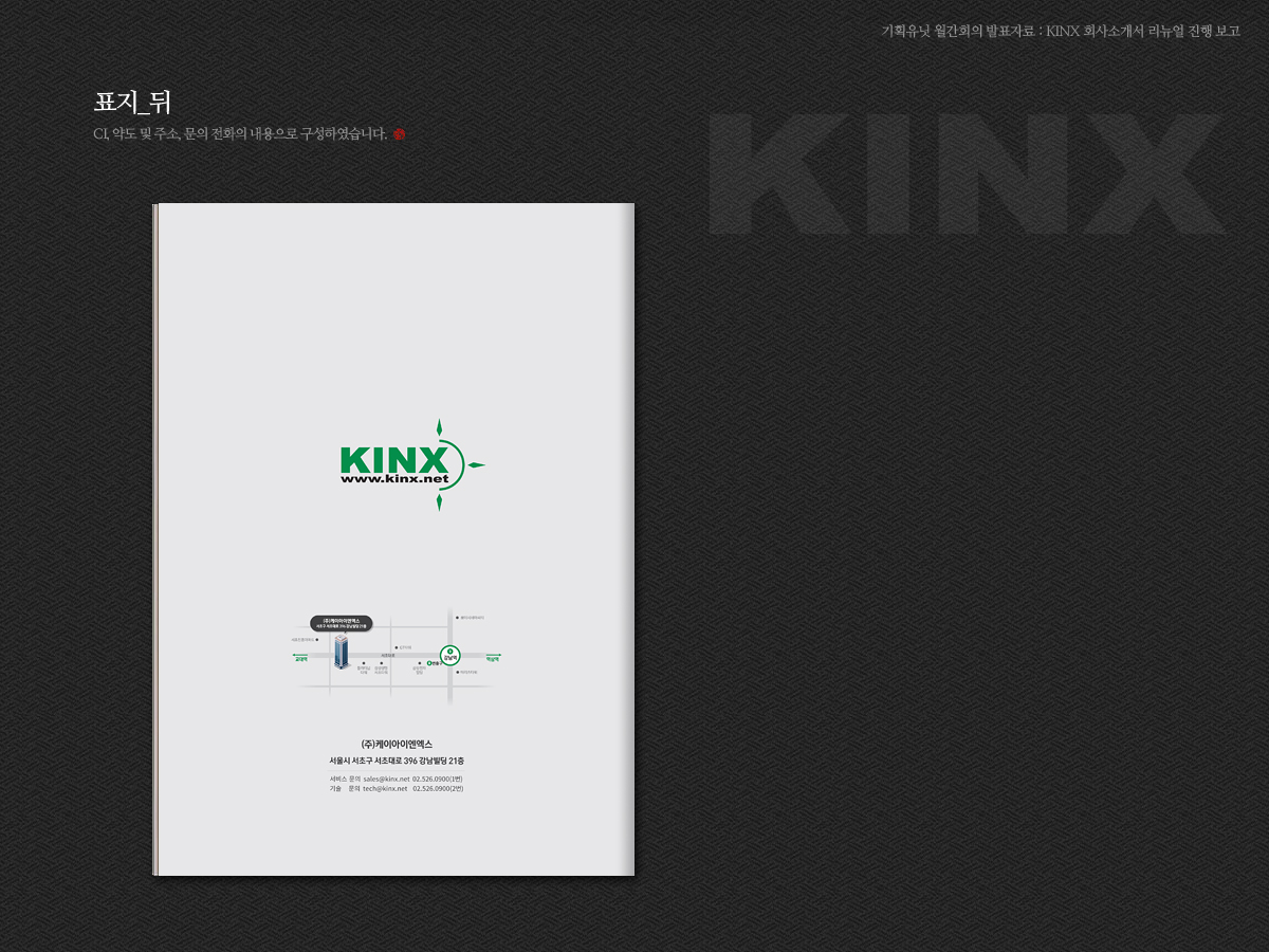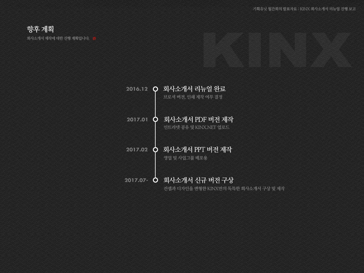 아래 이미지들은 리뉴얼 진행 도중 월간회의 발표를 강요당해 제작한 발표자료로, 리뉴얼 중간단계 중 만들어야 했기 때문에 최종 완성본과는 콘텐츠 구성이 약간 다르다. 또, 초기에는 실물 브로셔 제작을 기본으로 생각하고 작업을 시작했기 때문에 (실제로 실물 브로셔는 제작 못 함) 나중에는 어쩔 수 없이 레이아웃 등이 많이 달라질 수 밖에 없었다.
