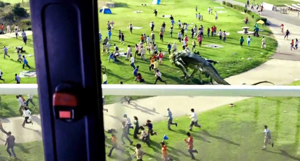 수면으로 뛰어들어가고, 무게로 인해 부서지는 블럭들에선 배경과 괴수 사이에 살짝 어색함이 느껴지기도 했습니다. 아무래도 실사에 괴수부분만 합성을 했기 때문에 이 정도의 위화감은 어쩔 수 없지 않나 싶기도 한데요, SF와 괴수영화를 좋아하고 잘 만들어진 애니와 외국드라마를 즐겨보는, 그리고 철저한 고증을 중시하는 저를 비롯한 짱공의 많은 분들의 눈에는 충분히 거슬릴 수 있는 부분일 겁니다. 특히 아쉬웠던 부분으로 생각되는 장면은 이 영화의 가장 스펙타클한 장면인 '괴물 구경하다가 괴물한테 쫓기는 신세가 되는 시민들의 모습'이었는데요, 그 넓은 한강변 공원에서 한 마리의 괴물 때문에 그 수많은 사람들이 한 방향으로 도망가는 장면은 약간의 실소를 자아내게 했습니다.