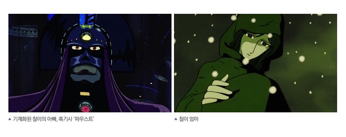 그런데 평소 철이의 엄마를 사모해왔던 닥터 반은 이들마저 파우스트처럼 기계화 되어서는 안된다는 생각에 아무도 모르게 철이와 철이 엄마를 지구로 피신시킨다. 뒤늦게 이 사실을 알고 분노한 프로메슘은 닥터 반을 처형하고, 현상수배를 내려 지구의 기계백작들에게 철이 엄마를 사살하고 그 증거로 철이 엄마를 박제하여 보내라고 명령을 내린다. 하지만 철이의 아버지인 흑기사 파우스트는 기계제국 건설에 있어서 철이와 같은 용사가 필요하다는 점을 인식시키고 철이만은 죽이지 말고 데려올 것을 프로메슘에게 간청한다.