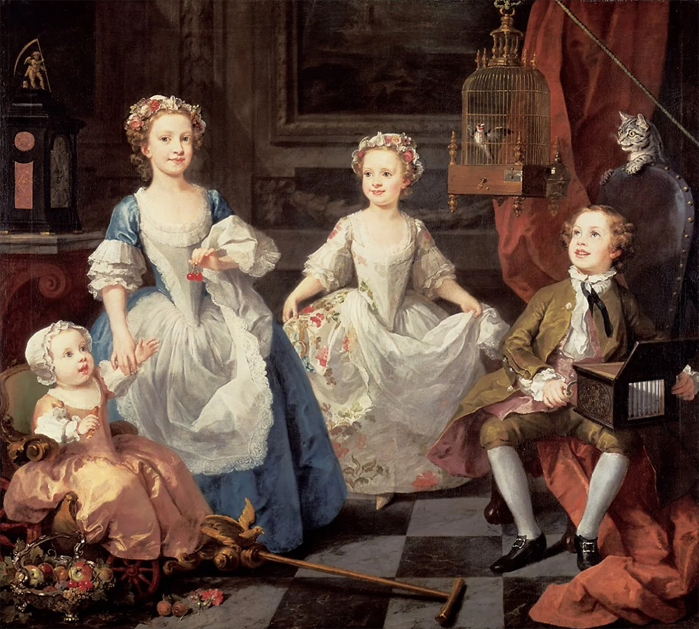 당대 사회를 풍자하는 그림을 그린 것으로 유명한 화가 '윌리엄 호가스'. 그림 속에는 당시 그레이엄 집안의 아이들 2남2녀가 있는데 수줍은 듯 웃고 있는 두 자매, 의자에 앉아 새장속의 새를 올려다보며 음악상자를 연주하던 장남, 유모차에 앉아 있는 막내 등 4명의 아이들이 보인다. 그러나 사실, 그림 왼쪽의 유모차를 타고 있는 막내는 드레스를 입고 있어 여자아이 같이 보이지만 사실은 사내 아이이다.