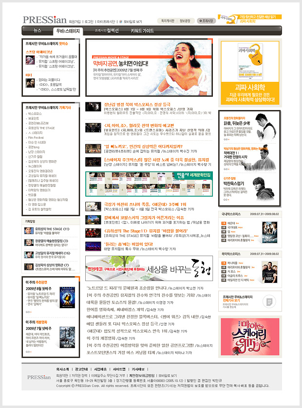 인터넷신문 프레시안(http://www.pressian.com) 측 요청으로 작업한 프레시안무비 메인 리뉴얼. 본지와의 톤앤매너를 준수하면서 최대한 프레시안무비만의 색을 가질 수 잇도록 하는 것에 중점을 두고 디자인함.