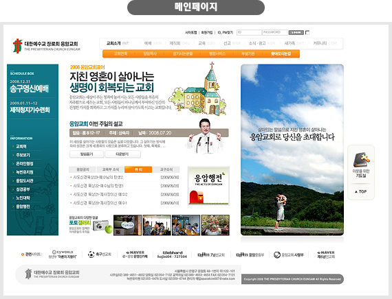 이 교회에 다니는 친한 동생의 의뢰로 작업한 응암교회 홈페이지 리뉴얼 작업이다. 디자인 외에 게시판/회원가입 부분 등의 개발영역(제로보드)까지 손봤으며 컨텐츠의 양도 예상을 뛰어넘어서 제작 완료까지 상당한 기간이 소요됐다.