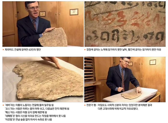 태양빛이 뜨겁게 내리쬐는 사막에서 관리인들에게 채찍질을 당하며 고통스러운 표정으로 돌을 나르고 깎는 노예들. 우리가 피라미드 건설 현장이라고 하면 의례 떠오르는 장면이다. 그러나 실제 피라미드 건설 현장은 누구나 일하고 싶어하던, 당시 이집트인들의 말 그대로 '신의 직장'이었다.