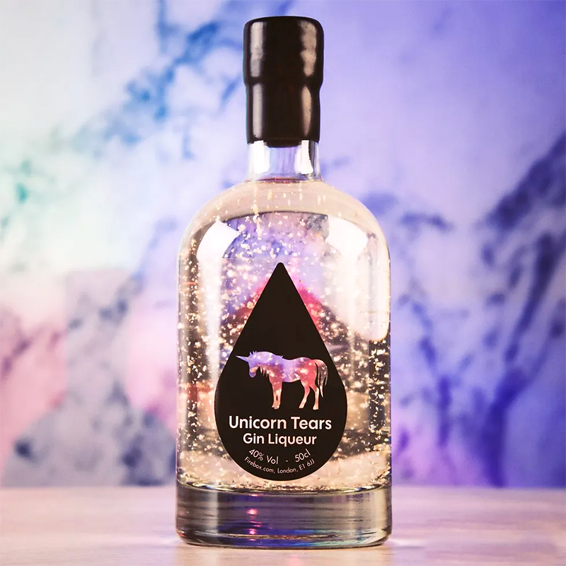 '이 술을 만들기 위해 수많은 유니콘들이 희생되었다'라는 문구로 사람들의 호기심을 자극하는 유니콘의 눈물. 100% 식용 은(Silver) 조각이 들어있어 특유의 영롱한 빛을 띄는 양주로 오렌지와 베리가 첨가되어 맛이 달달하지만 알코올 도수는 40도에 육박한다. 해외 온라인 쇼핑몰에서 40파운드(약 72,000원)에 판매 중. 아직은 영국에서만 판매가 가능하다고 한다.