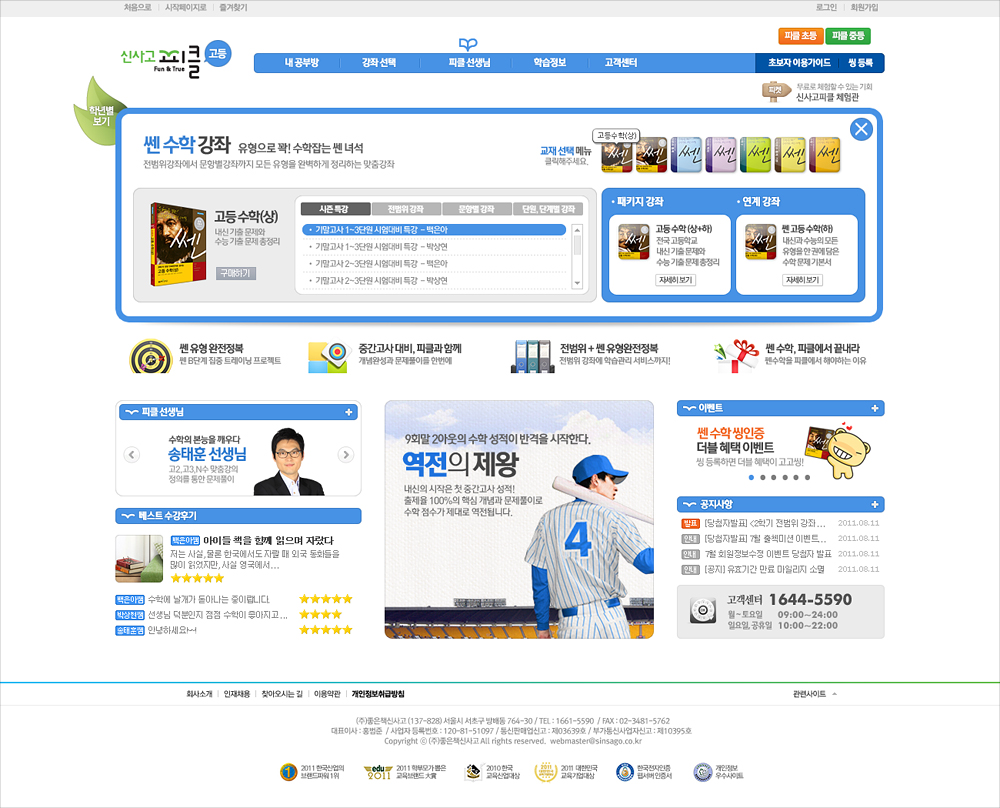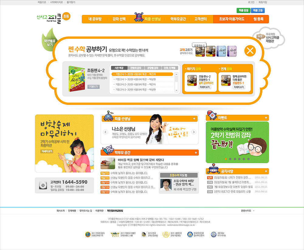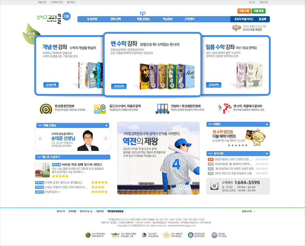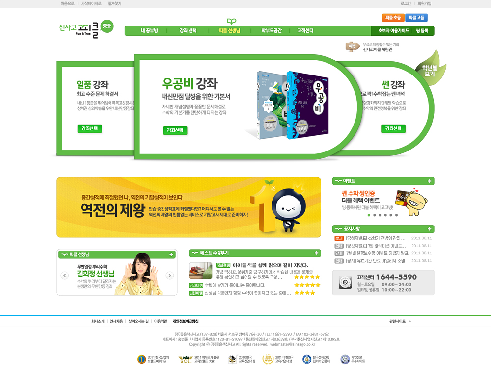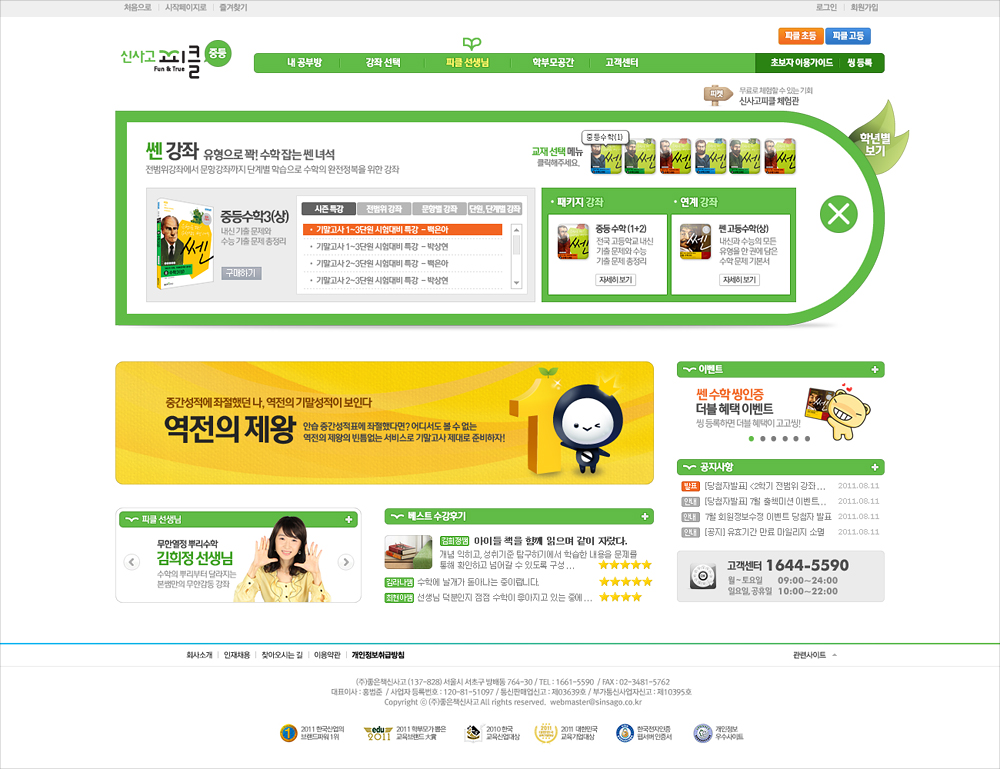 좋은책신사고의 수학인강 사이트인 신사고피클(현 쎈닷컴)의 디자인 리뉴얼. 내외부 디자인들 간의 경쟁 시안을 거쳐 채택되었다. 초, 중, 고등 타겟별로 디자인을 차별화했으며, 페이지 이동을 최소화하여 원하는 강좌로 빠르게 접근할 수 있도록 액션스크립트로 구현한 메인 비주얼이 포인트이다.